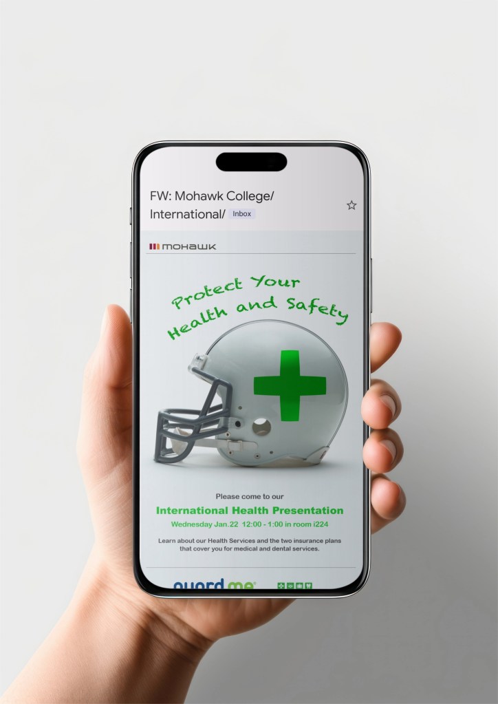 Designed a series of promotional materials for Mohawk College, including digital posters and email graphics for campus events such as professional development gatherings and international health presentations. Combined clear visual hierarchy and engaging imagery to enhance event visibility and encourage student participation across platforms.