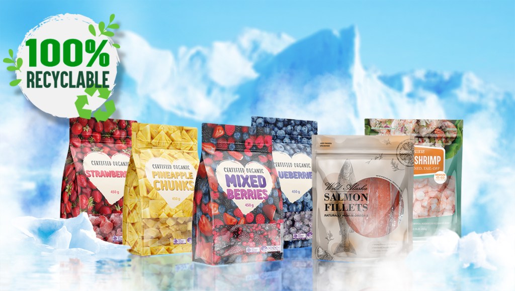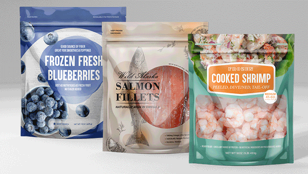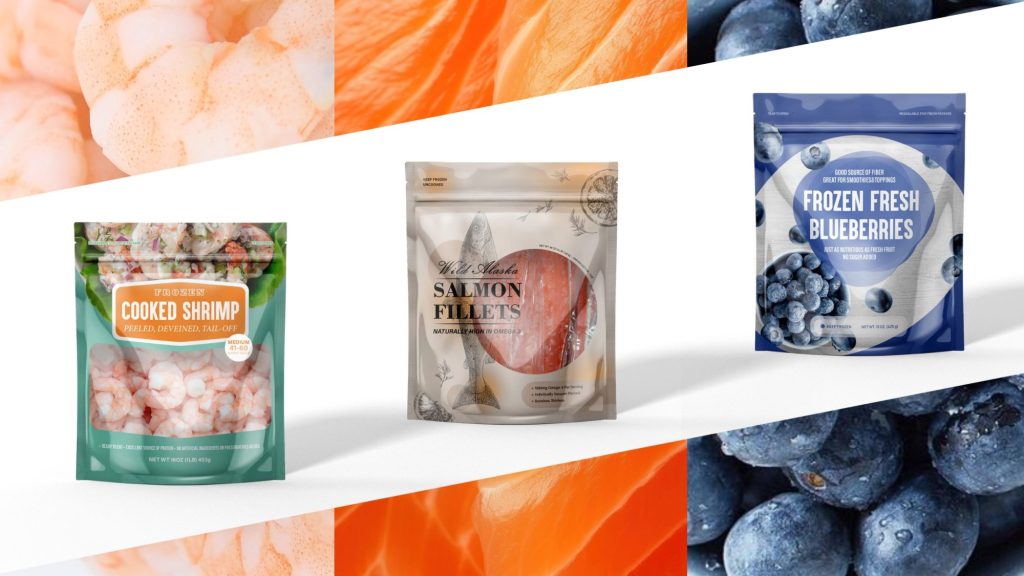 Created concept mockups to showcase the range of frozen food packaging solutions that Dupak could provide. The designs feature seafood and fruit products, highlighting freshness and quality through clean layouts, appetizing imagery, and modern typography.