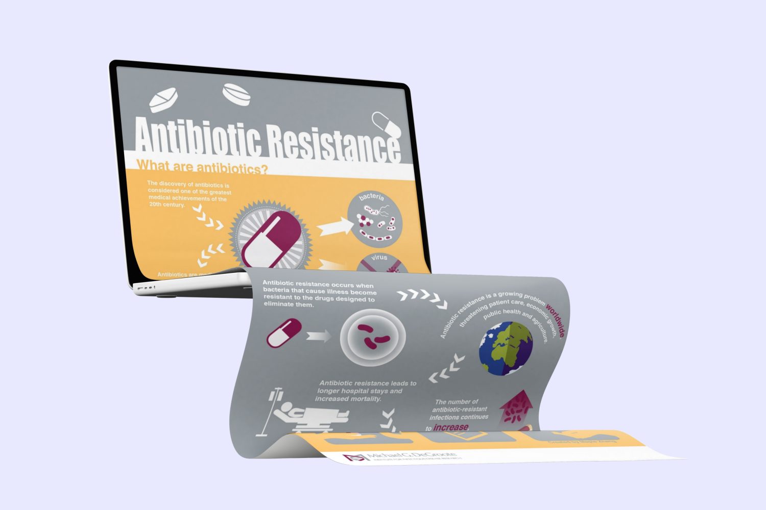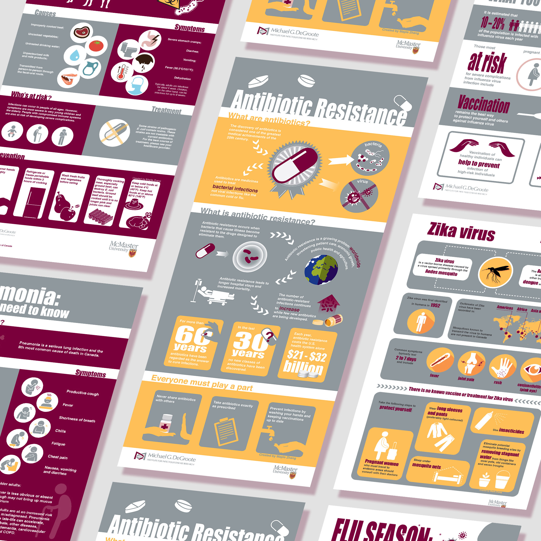 A series of data-driven illustrations designed for the Michael G. DeGroote Institute for Infectious Disease Research, translating complex research findings into clear and engaging visuals.