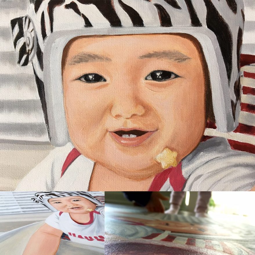 Snack Time — an acrylic painting on canvas created as a birthday gift for my one-year-old daughter, capturing the warmth, playfulness, and joy of childhood.