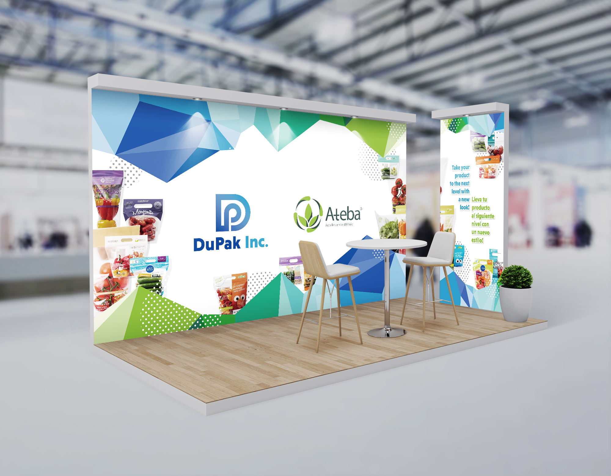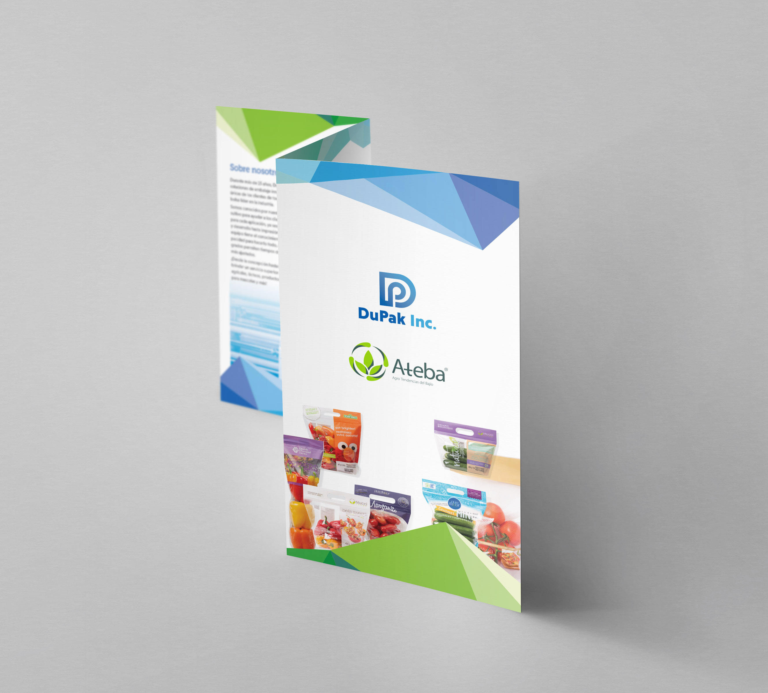 Created a tradeshow booth, sales kit, brochure, and product mockups for DuPak Inc. and partner Ateba to showcase their greenhouse fresh produce packaging at AMHPAC, following a fresh and clean brand aesthetic.